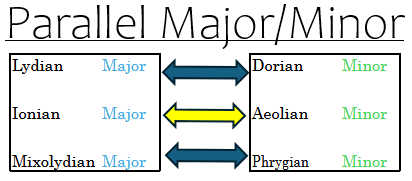 I talk a lot about modes and how to use them effectively. A few previous articles I posted like “Borrowing Musical Structures” and “Scales and Modes are the Same Thing?” talk about concepts like “Parallel Scales/Modes”. Parallel simply means that we are using scales and/or modes that all start on the same note. Having the starting point is a great way to compare and contrast notes that come after the first one.